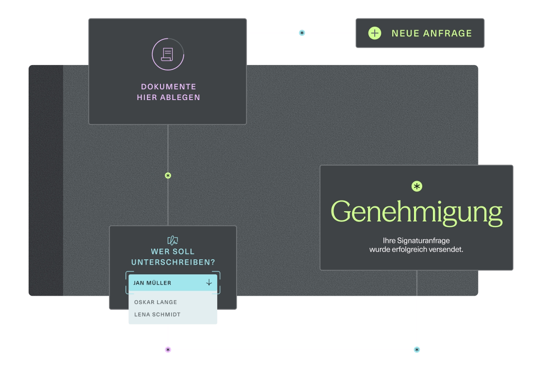 Mit digitalen Signaturen kann Ihr Team all diese Prozesse optimieren: Sie können Ihre Dokumente online zur Freigabe in anerkannten Formaten wie PDF versenden und Signaturen von Ihren Kunden, Partnern und Mitarbeitern online oder persönlich anfordern.