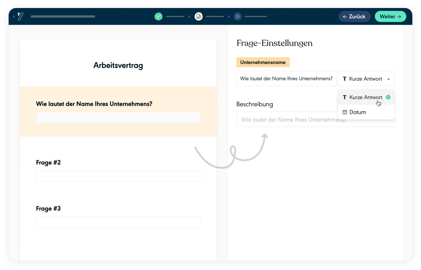Ein Formular wird automatisch erstellt und versendet, um Ihre Daten zu erfassen und Ihr Dokument sofort auszufüllen.
