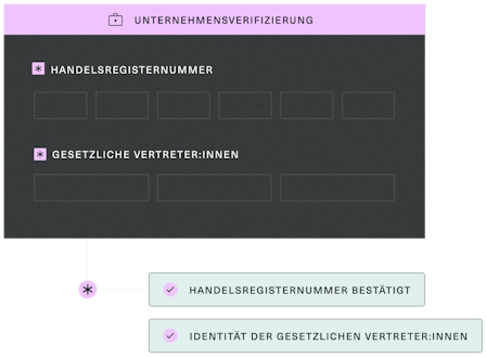 Die Registerprüfung ist ein wichtiger Bestandteil von KYB: Sie bestätigt die rechtmäßige Existenz eines Unternehmens, die Zuverlässigkeit seiner offiziellen Angaben und die Rechtmäßigkeit seiner gesetzlichen Vertreter:innen.