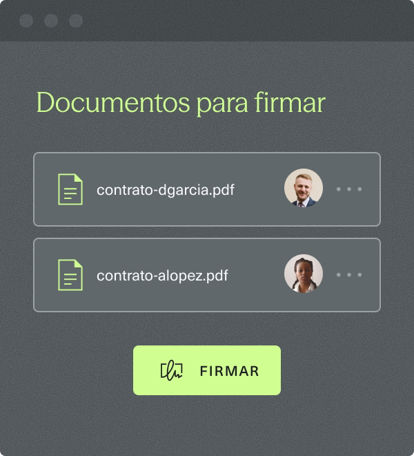 Proporciónate los medios para crecerHaz firmar cientos de documentos de manera sencilla y acelera tus procesos de contratación, acuerdos, etc.