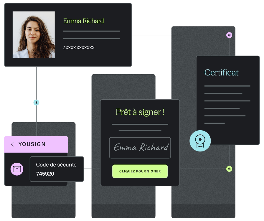 Renforcez la sécurité et la valeur juridique de vos signatures avec une étape d’identification des signataires, gérée instantanément dans notre application.