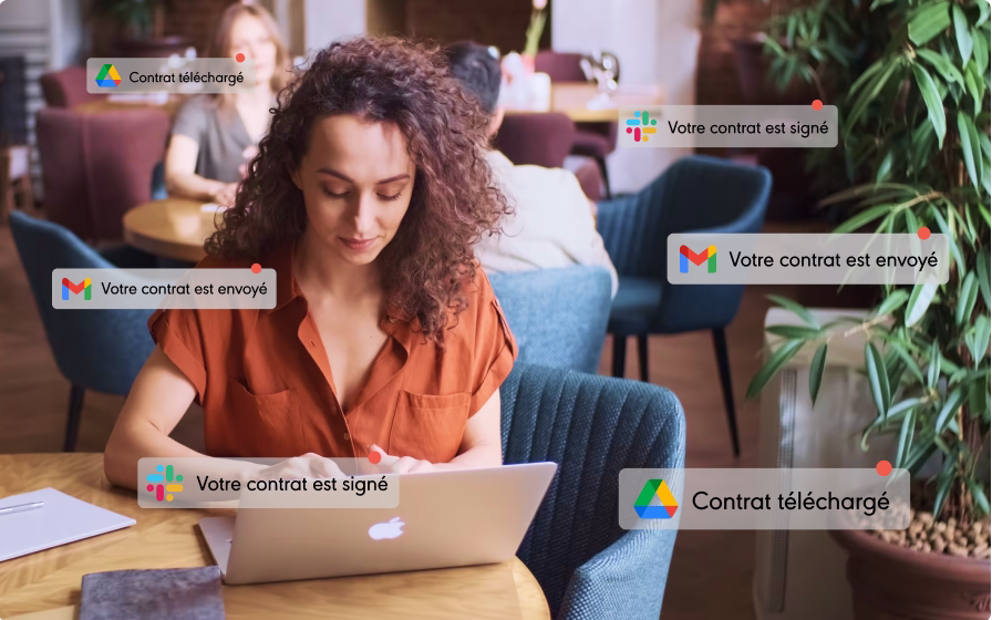 Easily create complex integrations between your tools and without coding. All you need is an account to instantly track your document signatures from your CRM, ERP, HRIS, communication tools, etc.