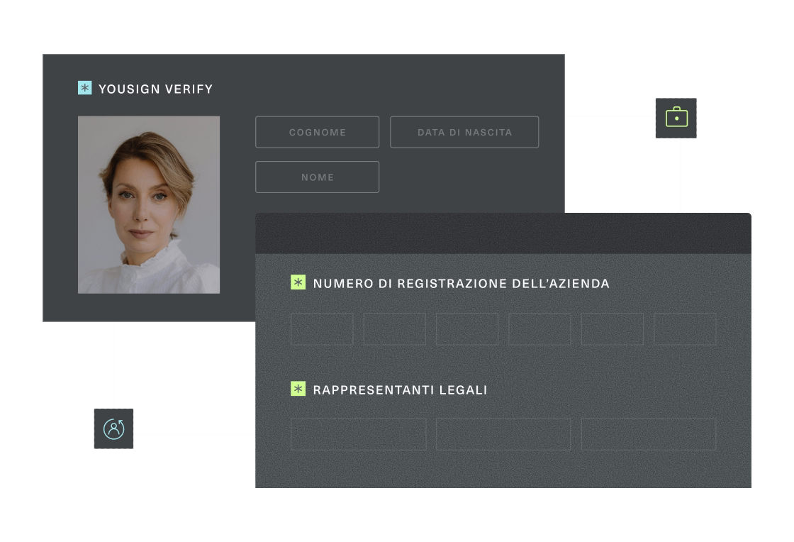 Usa la firma elettronica, la verifica dei documenti e i sigilli con Yousign, la piattaforma europea per un mondo digitale affidabile conforme ai requisiti di legge.