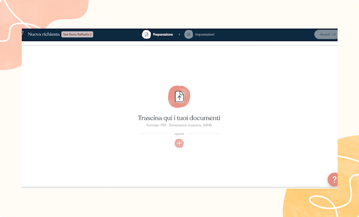 Carica i tuoi documenti da firmare online, i contatti a cui vuoi inviare il documento da firmare attraverso l’app per firmare documenti online e imposta l'ordine in cui le parti firmatarie dovranno firmare elettronicamente. Creeremo la firma quando l’utente porterà a termine il processo via app.