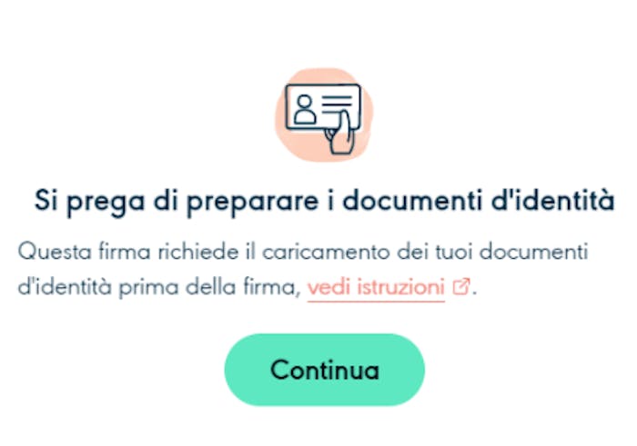 Il firmatario può vedere, al momento dell’apertura del link di firma, un popup sullo schermo che gli indicherà di preparare un documento di identità: