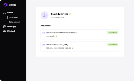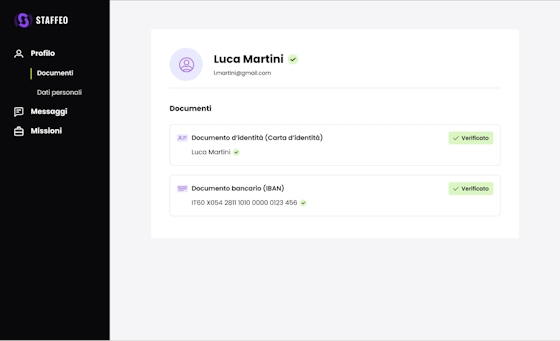 - Onboarding di freelance: verifica dell’identità + verifica dell’IBAN.